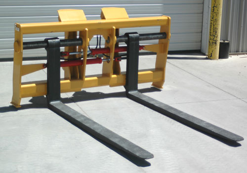 Rylind hydraulic adjustable forks are available with a 60” or 96” wide standard carriage. 120″ wide available for handling pipe or other larger applications.