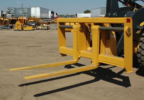They are used to handle different types of pipe, lumber, logs, hay bales, palatalized materials and many other applications. Visibility is excellent through the fork carriage from the operator’s seat to the load being handled. Heavy duty tine locks are standard to lock the tines back against the carriage. OEM Pin-on Mounts, Rylind Wedge-loc Coupler, Pin-loc Coupler, JRB, Volvo, Deere, CAT, ACS, and other coupler systems are available for all fork carriages.