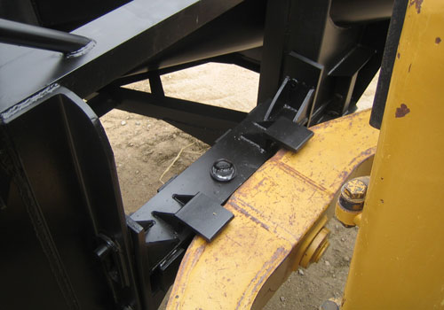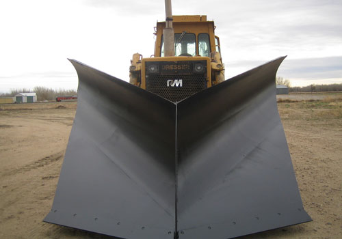 The V-Plow was designed with a mechanical float to contour the road while plowing and does not interfere with any of the other attachments the customer uses on the Dozer.