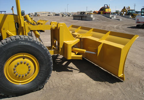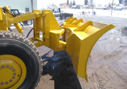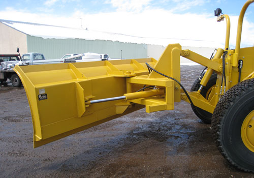 The cutting edges are three piece center punched reversible dozer type with end bits. Angel Dozer Blades are available in heavy duty or severe duty configurations, double thick wall square tube a-frame and 3″ center hinge pin for added strength. Moldboard Mounted heavy duty road oscillation, blade mounted shim adjustable skid shoes, and bolt-on extended snow guards are available.