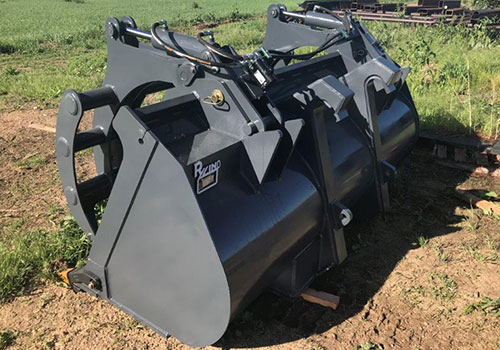 Rylind Quick Detach Grapple Buckets are a Heavy Duty material handling bucket with a single grapple and heavy duty cross bars. These buckets work well in refuse, recycling, trash, land clearing, and recycled material operations.